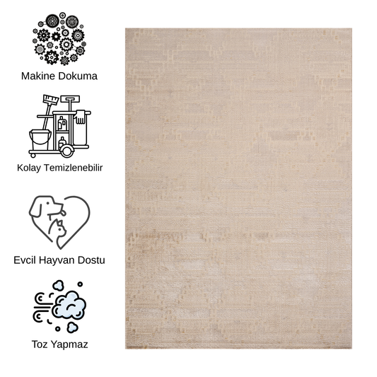 Impressive Serisi Modern Tasarım Bej Krem Saçaksız 4 Metrekare Salon Yatak Odası Halısı