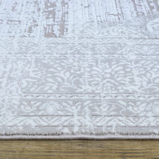 Impressive Serisi Etnik Tasarım Krem Gri Saçaksız 4 Metrekare Salon Yatak Odası Halısı