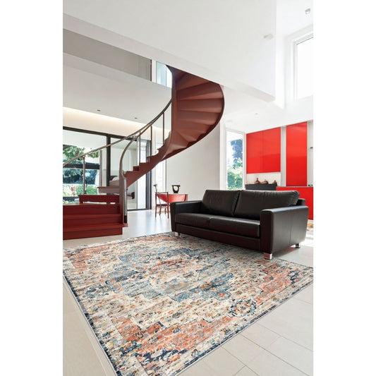 FR122 Kiremit Mavi Bej Klasik Desenli 160x230 Yıkanabilir Kaymaz Taban Halı