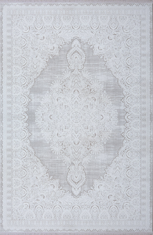 Concept Koleksiyonu Bej-Gri 6 Metrekare Saçaklı Modern Salon Mutfak Yatak Odası Halısı