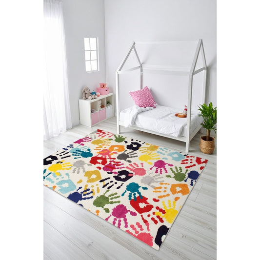 FR100 Renkli El İzi Desenli Dijital Baskı Kaymaz Taban Çocuk Odası Halısı