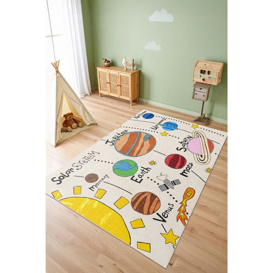 Güneş Sistemi Temalı Dijital Baskı Kaymaz Taban Çocuk Odası Halısı FR169