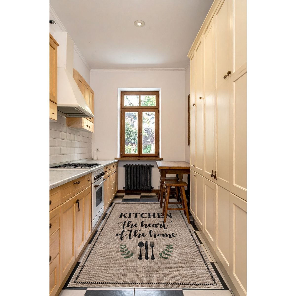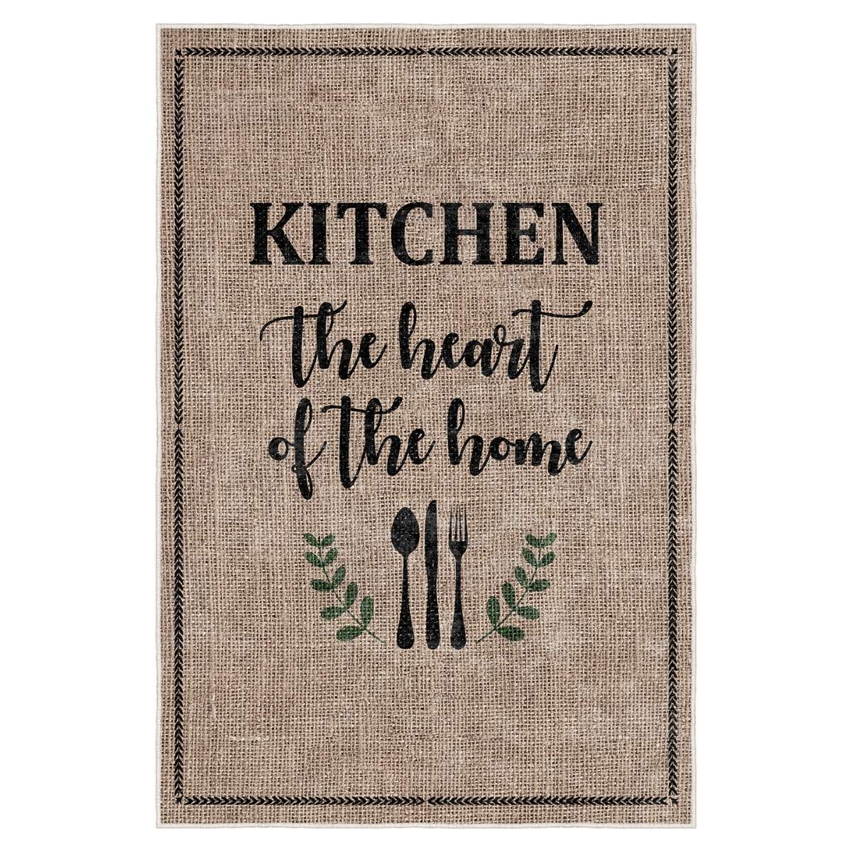Dar mutfağınız olduğundan daha küçük mü görünüyor? 80 cm en halı mı almalıyım diye kararsız kalıyorsanız, FR218 dar mutfak halısı tam aradığınız ölçü ve formu sunar. Bej zemin üzerine kahve tonlarında “Kitchen The Heart of The Home” yazı deseniyle tasarlanan bu model, uzun mutfak yolluk formu sayesinde alanı daha düzenli ve bütüncül gösterir.