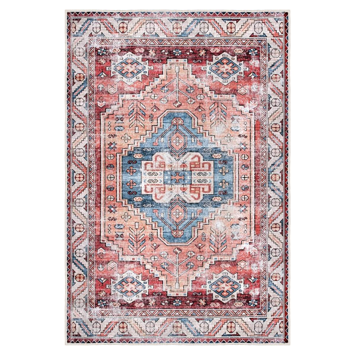FR122 kodlu klasik motifli dijital baskı halı, geleneksel desenleri modern renk geçişleriyle buluşturan özel bir tasarıma sahiptir. Kırmızı, mavi ve krem tonlarının dengeli kullanımı sayesinde mekâna sıcaklık ve karakter kazandırırken, eskitme efektli yüzeyi ile çağdaş dekorasyon anlayışına uyum sağlar. Bu yönüyle FR122, hem modern halı hem de zamansız bir dekoratif salon halısı arayanlar için güçlü bir alternatiftir.